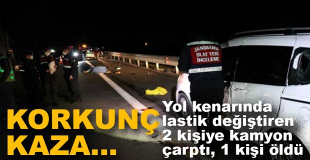 Bolu TEM Otoyolu Yeniçağa mevkinde seyir halindeki kamyonet, hafif ticari aracın patlayan lastiğini değiştiren 2 kişiye çarptı. Kazada, 1 kişi ölürken, 1'i ağır 2 kişi yaralandı.