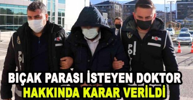 Bolu'da, iş kazası sonucu elinde kesik oluşan hastadan 20 bin lira bıçak parası isteyen ve suçüstü yakalanan doktor A.G. ve sağlık memuru İ.Ü. adli kontrol şartıyla serbest bırakıldı.