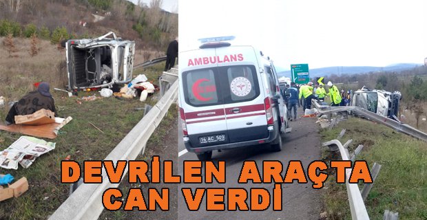 Bolu’da TEM Otoyolunda yoldan çıkarak bariyerlere çarptıktan sonra devrilen ticari araçta bulunan bir kişi yaşamını yitirirken bir kişi yaralandı.