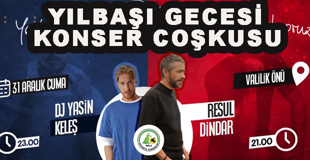 Bolu Belediyesi tarafından yılbaşı gecesi düzenlenecek konserde ünlü sanatçı Resul Dindar sahne alacak. Bolulular önce DJ performansı ardından da Dindar’ın şarkıları ile yeni yıla coşkuyla girecek.