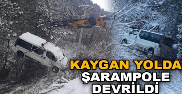 Bolu'da yoğun kar yağışı nedeniyle şarampole devrilen minibüsteki 2 kişi yaralandı.