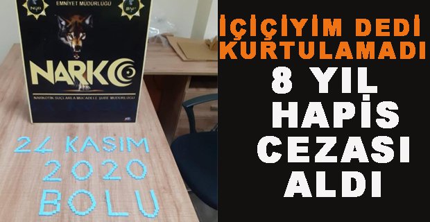 Bolu'da narkotik köpeğinin koku almasını önlemek için salça sürdüğü poşetlerde yüzlerce uyuşturucu hapla yakalanan ve mahkemede içici olduğunu savunan Şahin Gürol, 8 yıl 9 ay hapis cezasına çarptırıldı.