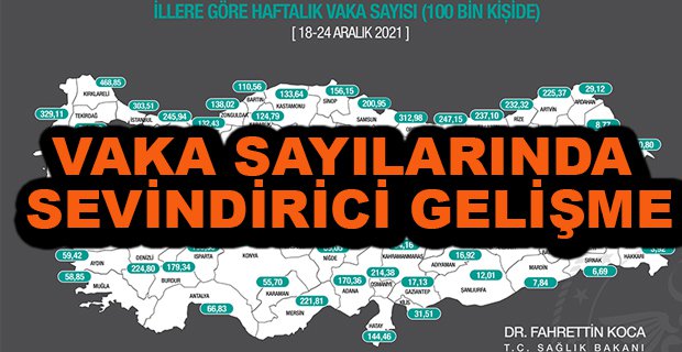 Bolu’daki koronavirüs vaka sayıları her geçen gün azalmaya devam ediyor. Ülke genelinde görülen omicron varyantı nedeniyle özellikle büyükşehirlerde vaka sayılarında ciddi artış yaşanırken Bolu’daki koronavirüs vaka sayılarının azalması dikkat çekti. Sağlık Bakanı Fahrettin Koca tarafından açıklanan son rakamlara göre Bolu’daki pozitif hasta sayısı bir hafta önceki rakamlara göre düşüş gösterdi. Sağlık Bakanı Fahrettin Koca tarafından açıklanan vaka haritasında geçtiğimiz hafta 100 binde 252.54 olan vaka sayısı 18-24 Aralık arasında ise 202.03’e düştü.
