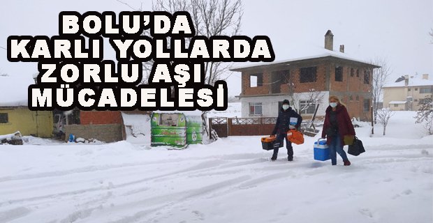 Türkiye'de kara kışın en sert ve çetin geçtiği kentlerden Bolu'da, yeni tip koronavirüs ile mücadele için dağ, kar, fırtına dinlemeyen sağlık ekipleri, kilometrelerce yol kat ederek vatandaşlara aşı ulaştırıyor. Kentteki hastaneler ve aile sağlık merkezlerinin yanı sıra kırsal mahallelerde de aşı çalışması yürüten ekipler, olumsuz hava koşullarına karşın sağlık hizmetini kesintisiz sürdürüyor. Sağlık ekipleri karla kaplı yolları aşarak dondurucu soğuğa rağmen köy köy gezerek aşılama çalışmalarını aralıksız sürdürüyor.