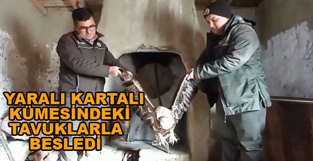 Bolu'nun Göynük ilçesi’nde yaralı halde bulduğu kartalı kümesine koyarak baktığı tavuklarla besleyen Nazmi Turan, daha sonra tedavisinin yapılması için ilçe orman işletme müdürlüğü yetkililerine teslim etti.