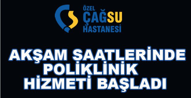 Sağlık Mahallesinde bulunan Özel Çağsu Hastanesi, hastaların istekleri üzerine mesai saatlerini uzattı. Çağsu Hastanesinde tedavi olmak isteyenler için akşam saatlerinde de poliklinik hizmeti verilmeye başlandı. Muayene olmak isteyen vatandaşlar saat 19.00’a kadar polikliniklerde işlemlerini yapabilecek.