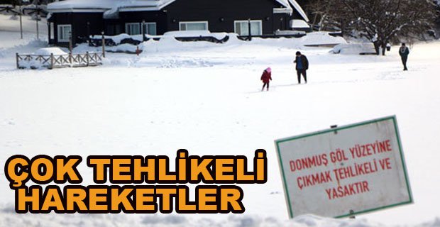 Bolu’da karla kaplı Gölcük Tabiat Parkındaki donan gölün üzerine çıkarak yürüyüş yapıp fotoğraf çektiren vatandaşlar tehlikeye davetiye çıkarıyor.