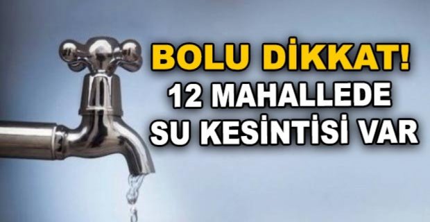 Bolu Belediyesi yaptığı duyuru ile 04 Şubat 2022 Cuma günü saat 13.00-24.00 saatlerine kadar Bolu Yaşamkent, Umutkent, Kılıçarslan, Apagut, Dağkent, Karaköy(1. Ve 2. Etap Toki), Paşaköy (D-100’ün Kuzey bölgesi), Çakmaklar, Salıbeyler, Sarıcalar, Dodurga ve Yukarısoku mahallelerinde su verilemeyeceğini duyurdu.