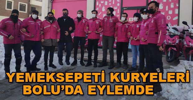 Yemeksepeti firmasının kuryelere verdiği zammı az bulan çalışanlar grev kararı aldı. Türkiye’nin bir çok kentinde iş bırakan yemeksepeti çalışanlarına Bolu’daki çalışanlarını da destek verdi. Bolu’da motor kuryeler iş bırakarak servise çıkmama kararı aldı. Bahçelievler Mahallesindeki deponun önünde bir araya gelen kuryeler adına açıklamala yapan Uğur Çakır, zorlu koşullarda hizmet verdiklerini vurgulayarak, “ Yeni iş kollarını katarak yeni kazanç kapıları sağlayan Yemeksepeti Banabi, yılın son aylarında bize umut satmış, muhtemelen eşine rastlanmamış şekilde yeni yıl maaşlarını ocak ayının son günlerinde, yanı maaşların yatacağı günün gecesinde açıklayarak süreci geri dönülmez bir noktaya taşımıştır. Yemeksepeti işçileri haklarını alana dek grevi sürdürecektir” dedi.
