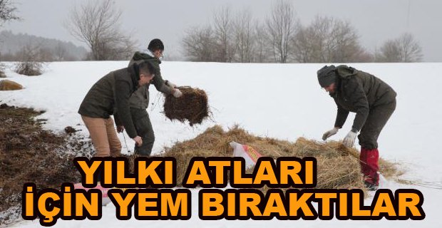 Bolu’da kentin yüksek kesimlerindeki yaylalardaki karlı kaplı alanlarda yiyecek bulmakta güçlük çeken yılkı atları ve yaban hayvanları için ekipler besi yemi ve saman bırakıyor. Pirahmetler, Küpçüler, Kılıçarslan ve Ağaççılar köyleri ile At Yaylası'na gelen Bolu Doğa Koruma ve Milli Parklar Şube Müdürlüğü ekipleri özellikle yılkı atlarının yoğun olarak bulunduğu at yaylası ile çevresindeki Pirahmetler, Küpçüler, Kılıçarslan ve Ağaççılar köylerindeki ormanlık alana 700’er kilo besi yemi saman bıraktılar. Düzenli olarak bölgelere giderek yaban hayatı için yem bırakan ekiplerin çalışmaları sürecek.