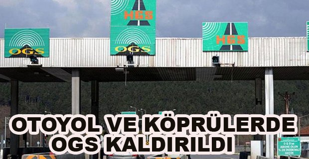 Karayolları Genel Müdürlüğü tarafından alınan yeni kararla otoyol ve köprü geçişlerinde OGS kaldırıldı. Geçiş ücreti HGS üzerinden yapılacak.