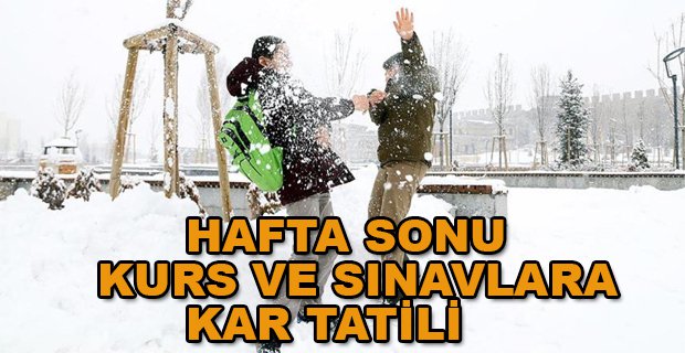 Bolu’da etkili olan olumsuz hava koşulları nedeniyle il genelinde tüm resmi/özel eğitim öğretim kurumlarındaki ders,kurs ve sınav faaliyetleri ile özel eğitim ve rehabilitasyon merkezleri, özel öğretim kurslarının faaliyetlerine iki gün ara verildi.