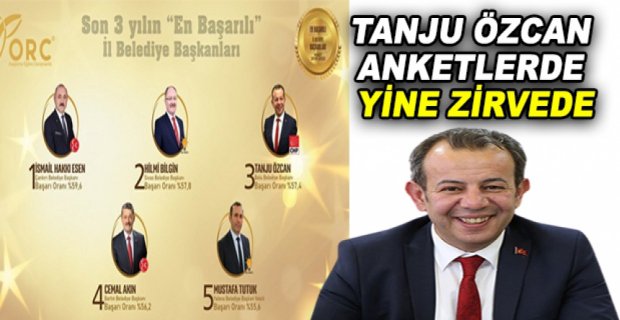 Göreve geldiği günden bu güne birçok anket ve araştırma firması tarafından yapılan anketlerde ilk üç isim arasında yer alan Bolu Belediye Başkanı Tanju Özcan, son yapılan anketlerde de başarı oranıyla zirveye oturdu. Başkan Özcan, ORC firması tarafından yapılan ‘Son 3 Yılın En Başarılı İl Belediye Başkanı’ anketinde üçüncü oldu.
