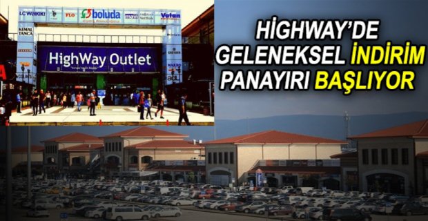 Bolu'da Tem Otoyolu üzerinde bulunan Avrupa'nın en büyük otoyol üzeri alışveriş tesisi Highway AVM'de geleneksel hale gelen indirim panayırı 15 Mart-15 Nisan 2022 tarihlerinde müşterileriyle buluşacak. Mağazaların önüne kurulu bulunan dev indirim çadırlarında, ünlü markaların en seçkin ürünleri outlet fiyatlarının da altında ekstra ekstra indirim fırsatları ile müşterileri bekliyor olacak. İndirim panayırında; giyimden teknoloji ürünlerine, ayakkabıdan çantaya, kozmetikten aksesuara ve ev tekstilinden ev dekorasyonuna tüm kategorilerde indirim üstüne indirim fırsatları olacak