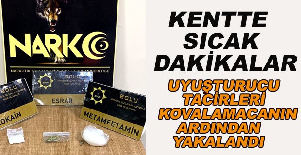 Bolu’da polis ekipleriyle yaşanan kovalamacanın ardından yakalanan araçta bulunan iki şüpheli gözaltına alınırken otomobilde yapılan aramada uyuşturucu maddeler ele geçirildi.