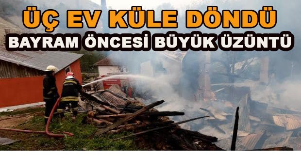 Bolu’nun Mudurnu ilçesinde çıkan yangında 3 ev ile ahır, samanlık ve ardiye yanarak küle döndü. Bayram öncesi evleri yanan vatandaşlar büyük üzüntü yaşadı.