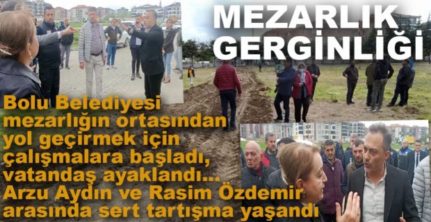 Bolu’da belediye ekiplerinin Çakmaklar Mahallesinde bulunan mezarlıktan yol açmak istemesine vatandaşlar tepki gösterdi. Olay yerine gelen AK Parti Bolu Milletvekili Arzu Aydın ile Bolu Belediye Başkan Yardımcısı Rasim Özdemir arasında yol yapım çalışması nedeniyle gerginlik yaşandı.