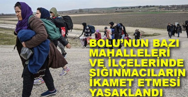 Buna göre Bolu ve ilçelerinde bazı mahalleler yabancıların ikametine kapatıldı. Göç İdaresi Başkanlığı tarafından Bolu merkezde Büyükcami Mahallesi ve Fasıl Köyü Uran mevkisi ile Mengen’in Kuzgöl Köyü Yıldız mevkisi, Mudurnu’nun Sürmeli Köyü Çayıraltı Mevkisi ve Gerede'nin Yakakaya Köyü Yunuslar mevkisi ve Orta Mahalle’de yabancıların ikamet etmesi yasaklandı.