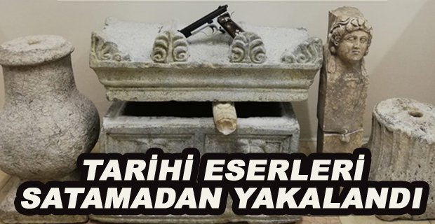 İl Jandarma Komutanlığı Kaçakçılık ve Organize Suçlarla Mücadele Şube Müdürlüğü ekipleri bir evde tarihi eserler bulunduğu ihbarı üzerine çalışma başlattı. Jandarma ekipleri tarafından belirlenen adrese yapılan baskında 1 adet lahit, 1 adet heykel, 2 adet sütun kaide ve 1 adet tabanca ele geçirildi.