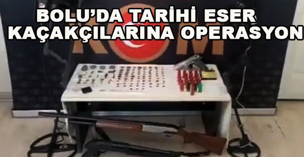 Bolu’da polis ekipleri tarafından bir eve düzenlenen operasyonda onlarca sikke, tarihi eserler ve silahlar ele geçirilirken olayla ilgili iki şüpheli gözaltına alındı.
