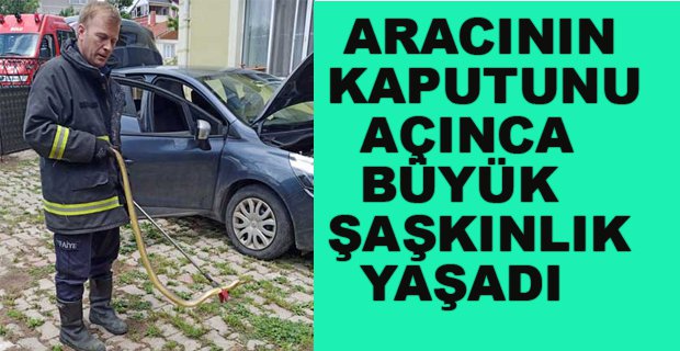 Bolu'da motorundan gelen ses nedeniyle kaputu açtığında yılanla karşılaşan araç sürücüsü büyük şaşkınlık yaşadı. Aracın motor kısmındaki yılan itfaiye ekibi tarafından çıkarıldı.