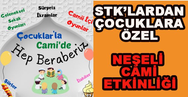 Bolu’da hizmet veren sivil toplum kuruluşları Tügva, Cihannüma, Önder İmam Hatipliler Derneği, Evrensel Hafızlar Derneği, İlim Yayma Cemiyeti, MTTB, Ensar Vakfı, Semerkand Vakfı, Memur-Sen, Bolu İHH, Türkiye Diyanet Vakfı, ve Hayrat Vakfı tarafından çocukların camiye gelmelerini sağlamak için içerisinde oyunların ve eğlencelerin yer aldığı etkinlik düzenlenecek. 2 Temmuz’da saat 18.00’de Kalıcı konutlar camisinde yapılacak etkinlikte aileler çocukları ile birlikte camide buluşacaklar. Üç saat sürmesi planlanan etkinlik boyunca cami içerisinde ve dışında eğlenceli oyunlar düzenlenecek.