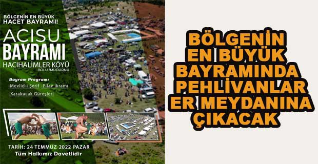 Bolu’nun Mudurnu ilçesinde bölgenin en büyük hacet bayramı olan Hacıhalimler Köyü Acısu Bayramı 24 Temmuz 2022 Pazar günü yapılacak. Bayramda ödüllü karakucak güreşlerinde pehlivanlar er meydanına çıkacak.