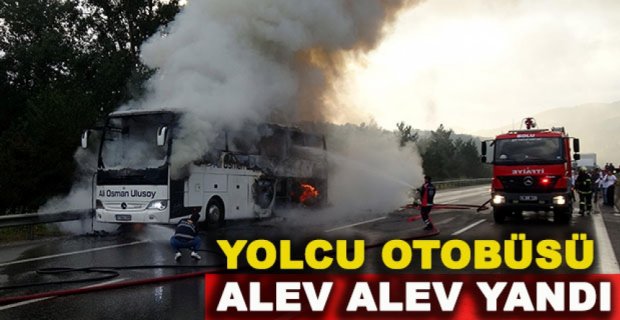 Bolu'da TEM Otoyolu'nda Trabzon'dan İstanbul'a giden yolcu otobüsü alev aldı. Yolcular kısa sürede tahliye edilirken, alevlerin sardığı otobüs kullanılamaz hale geldi.