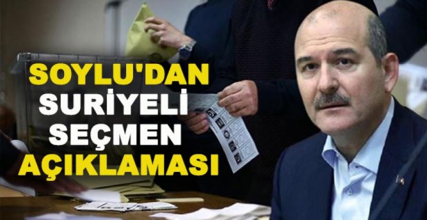 İçişleri Bakanı Süleyman Soylu, Suriyeli seçmen sayısına ilişkin, "Suriyeli seçmen sayısı şu an 120 bin. 211 bin vatandaş yaptık. Bunun 91 bini, 92 bini çocuk, reşit değil yani. Geri kalanı 120 bini de 60 küsur bini erkek 55 küsur bini kadın bu kadar." bilgisini paylaştı.