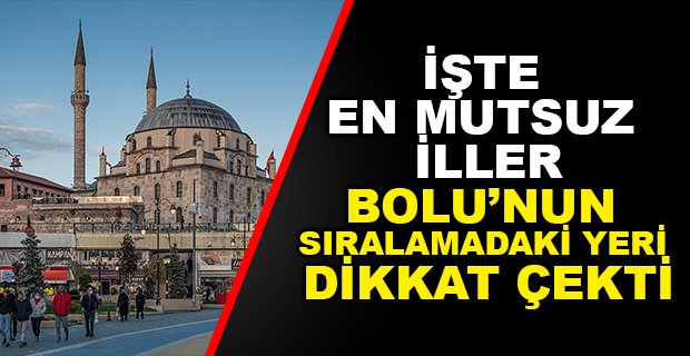 Türkiye İstatistik Kurumu (TÜİK) tarafından yapılan ''Yaşam Memnuniyet Araştırması'' sonucunda illerin mutsuzluk oranları açıklandı. Tabloda Bolu en son sıralarda yer aldı.