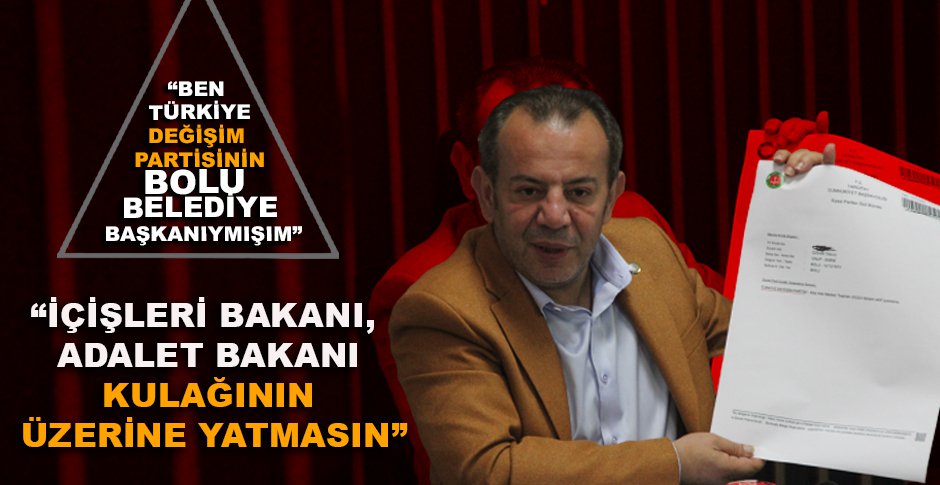 Türkiye adına bu durumun kaygı verici olduğunu ifade eden Başkan Tanju Özcan “Hem kendimle hem de ülkemle ilgili kaygı verici bir durumu sizlerle paylaşmak için sizleri buraya davet ettim. Bir süre önce Cumhuriyet Halk Partisi beni bir yıl süreyle ihraç etti. Tabii bir yıl süreyle ihracım demek bir yıl süreyle Cumhuriyet Halk Partisi üyeliğimin de silinmesi anlamına geliyor. Dün itibariyle bu süreci takip eden genel merkezde çok sevdiğimiz bir kardeşim beni aradı. Üyeliğim düşmüş mü diye kontrol ederken, abi senin bir başka partide üyeliğin görünüyor dedi. Bir baktım ben 2022 yılının ikinci yarısında Türkiye Değişim Partisi’ne Kilis'ten üye olmuşum. Ve aktif üyeymişim şu anda. Yani ben bağımsızım zannederken ben şu anda Türkiye Değişim Partisinin Bolu Belediye başkanıymışım” ifadelerini kullandı.