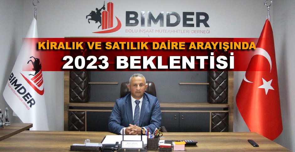 Bolu İnşaat Müteahhitleri Derneği(BİMDER) Başkanı Bülent Arslan, 2023 yılının ilk aylarında konut kredi faiz oranlarının düşmesini beklediklerini ifade ederek, “Faizlerin düşmesiyle emlak sektörü canlanacaktır ve daire satışları talep doğrultusunda hareketlenecektir. Bolu’da inşaat yapan firma sayısı 200’ün üzerinde olup bunlardan 50-60 tane firmamız yoğun bir şekilde üretim yapmaktadır. 2023 yılında arz talep doğrultusunda kiralık konut bulma sıkıntısının azalacağını ümit ediyorum.” şeklinde konuştu.