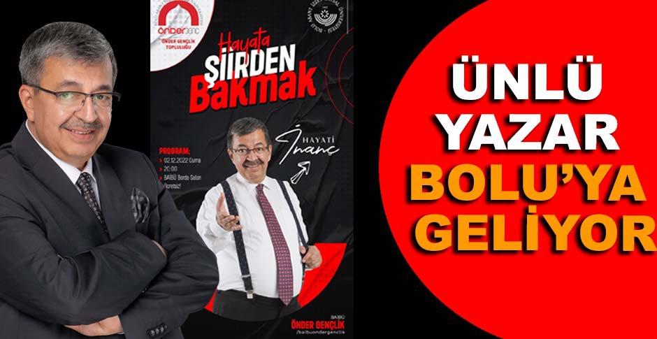 Şiir okumaları ve sohbetiyle gönüllerde taht kuran Hayati İnanç, Bolu Abant İzzet Baysal Üniversitesi’nde, Bolulularla buluşacak. "Hayata Şiirden Bakmak" temalı konferans ile BAİBÜ Bordo Salonda 2 Aralık Cuma günü saat 20.00’da sahneye çıkacak. Ücretsiz olan söyleşiye Bolu Önder İmam Hatipler Derneği Başkanı Hüseyin Altundağ, tüm Bolu halkını davet etti.