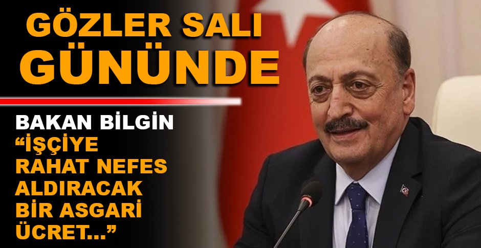 Çalışma ve Sosyal Güvenlik Bakanı Vedat Bilgin, asgari ücret milyonların beklediği asgari ücret zammı ile alakalı açıklama yaptı. Bilgin, "İşletmeleri ayakta tutacak, işçimize rahat nefes aldıracak bir asgari ücret seviyesinin belirlenmesi gerektiğini düşünüyoruz " dedi.