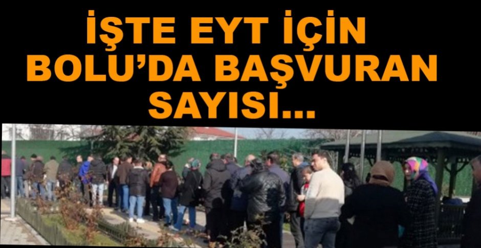 Bolu’da EYT için bugüne kadar 7 bin kişi başvuru yaptı. SGK Bolu il binasının önünde uzun kuyruklar oluşurken, 4 bin kişinin askerlik, 3 bin kişinin ise doğum borçlanması için başvuru yaptığı öğrenildi.