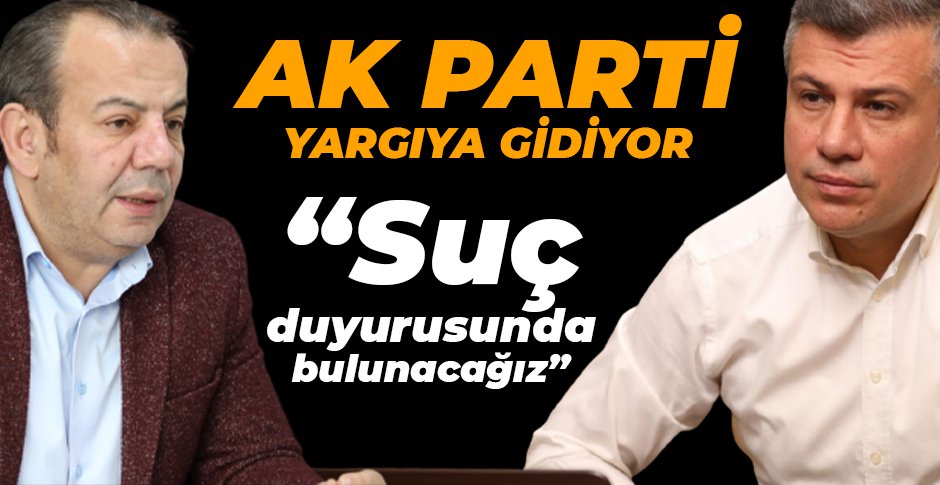 AK Parti İl Başkanı Suat Güner, Belediye Başkanı Tanju Özcan hakkında suç duyurusunda bulunacaklarını açıkladı. Güner, "Sayın Cumhurbaşkanımız, Valimiz, Vali Yardımcımız üzerinden sürdürdüğü kışkırtma nedeniyle Cumhuriyet Başsavcılığna suç ihbarında bulunacağız" dedi.