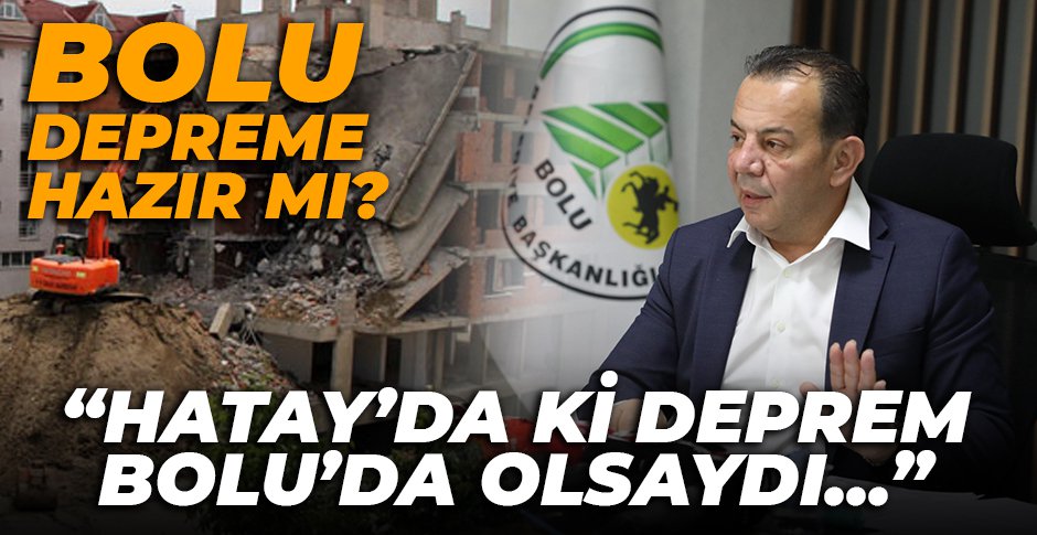 Bolu’nun birçok şehre göre daha fazla hazırlıklı olduğunu belirten Bolu Belediye Başkanı Tanju Özcan, “Şunu memnuniyetle söyleyebilirim, Allahuteala bize deprem gerçeğini her 20 veya 30 yılda bir hatırlattığı için veya bazen daha kısa periyotlarda. Bolu birçok şehre göre depreme daha hazırlıklı. Bolu'da riskli olan arkadaşlar, ki o zaman yapı stoğunun yüzde 25’i incelenmiş ki çok büyük bir rakam. Hani rapor ne kadar bilimseldi, değildi. Ben o tartışmaya girebilecek düzeyde değilim. Ama özellikle şu anda Bolu'daki binaların yüzde 70’inden fazlasının 1998 yönetmeliği, 2007 yönetmeliği ve 2018 yönetmeliğinden sonra yapıldığını memnuniyetle söylerim. Yani şunu açık olarak söylüyorum. O deprem burada olsaydı hasar yaratır mıydı? Yaratırdı. Ama bir Kahramanmaraş kadar bir Hatay kadar hasar yaratmazdı. Hani nüfusa göre o kadar çok vefat olmazdı. Bunu rahatlıkla söylüyorum. Hiç olmazdı falan demiyorum. Böyle bir iddiam yok. Hiç olmazdı falan demiyorum” ifadelerini kullandı.