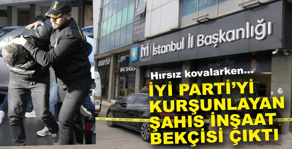 İstanbul'da Merter İş Merkezi'nde bulunan İyi Parti İstanbul İl Başkanlığı, bu sabah saatlerinde kurşunlanırken, olayı hırzı kovalayan bekçinin yaptığı ortaya çıktı. dün akşam saatlerinde bir inşaattan hırsızlık yapmaya çalışan şüpheliyi yakalamaya çalışan inşaat bekçisi M.E.’nin, ruhsatlı silahıyla kovaladığı şüphelilere yönelik ateş ettiği ve kurşunların söz konusu partinin il merkezine isabet ettiği tespit edildi.