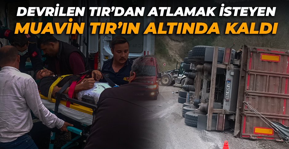 Bolu’nun Mengen ilçesinde virajı alamayan tavuk gübresi yüklü TIR devrildi. Devrilme esnasında araçtan atlamaya çalışan muavin TIR ile yer arasında sıkışıp kaldı.