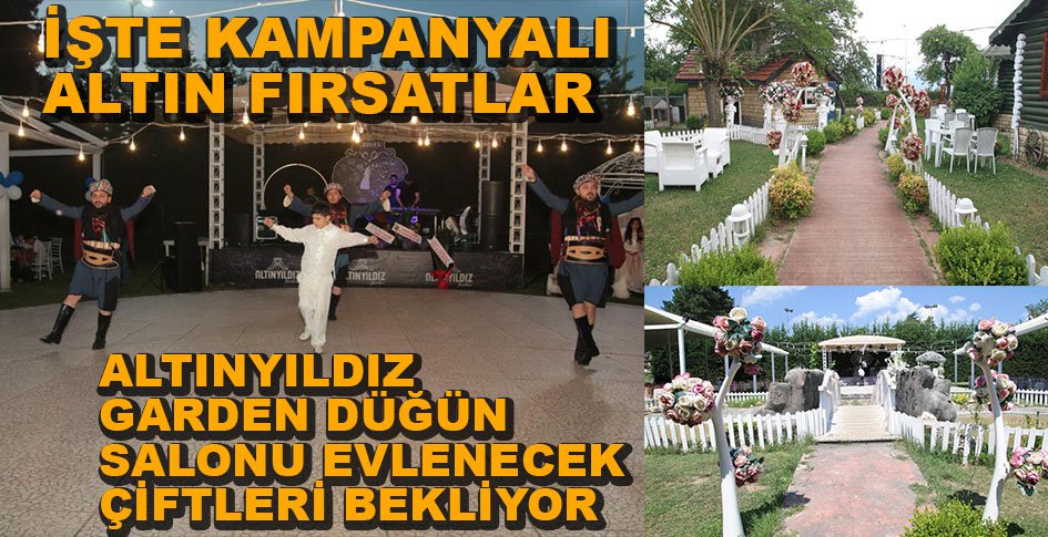Açık hava kır düğünlerinin yapıldığı Altınyıldız Garden Düğün Salonu’nda 300-400 kişilik düğünler Cuma günü hariç hafta içi 32 bin 500 TL, hafta sonu gündüz 37 bin 500, hafta sonu akşam ise 40 bin TL ile evlenecek çiftleri bekliyor.