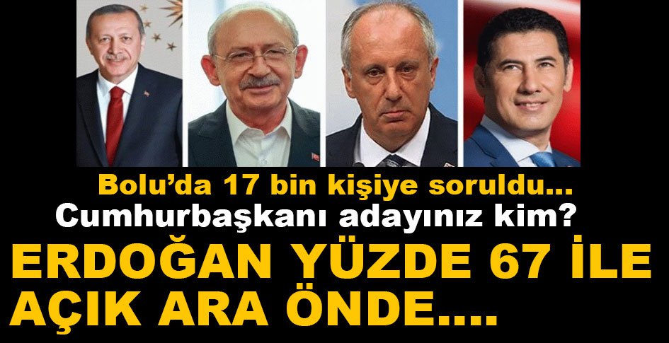 Bütün illerde seçim anketi yapan AK Parti Genel Merkezi, önde gelen anket şirketlerinden biriyle yaptığı çalışmada Bolu’da vatandaşlara ‘Cumhurbaşkanı adayınız kim?’ sorusu soruldu.