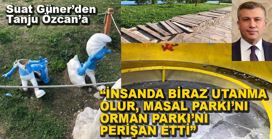Suat Güner’den Tanju Özcan’a çok sert cevap geldi. Güner, “Utanmadan konuşuyor. Heykellerden çocukların mutlu olduğunu söylüyor. Biz ona Masal Park gibi evlatlarımızın mutlu olduğu bir park bıraktık. Park şu anda kullanılmaz halde. Oyuncaklar paramparça olmuş. Zaten bir icraatı yok olanı da bozup attılar. İnsanda biraz yüz olur. Vatandaşlarımız Masal Parkı’na gidip baksınlar. Rezilliğe şahit olsunlar” dedi.