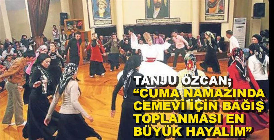 “Bir camide cemevi için bağış toplanması hayali olduğunu belirten Özcan, “En büyük hayalim Cuma namazı çıkışında yapılacak olan cemevi için bir bağış kampanyası yapılırsa veya bir cemevi yapıldıktan sonra cemden komşu mahalledeki cami için para toplanırsa, işte o zaman Türkiye normalleşir”