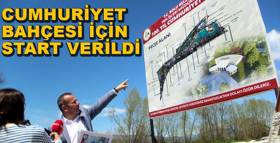 Bolu Belediye Başkanı Tanju Özcan, 378 dönüm arazi üzerine yapılacak olan 100'üncü Yıl Cumhuriyet Parkı için ilk kazmanın vurulduğunu açıklayarak, “Burası Bolu’nun en büyük parkı olacak hatta bölgenin en büyük parkı olacak. Parkın ilk etabının bu yıl içerisinde tamamlanması planlanıyor” dedi.