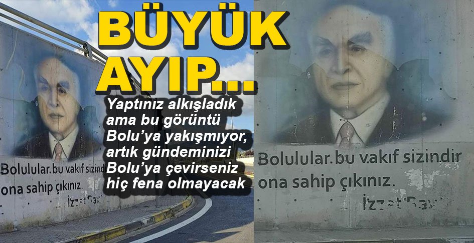 Bolu’nun hayırsever iş insanı İzzet Baysal için düzenlenen şükran günlerinde 2021 yılında Bolu Belediyesi tarafından Paşaköy Kavşağı’ndaki alt geçide yapılan İzzet Baysal resminin ve üzerinde yazılan yazıların silinmiş hali vatandaşların tepkisi çekiyor.