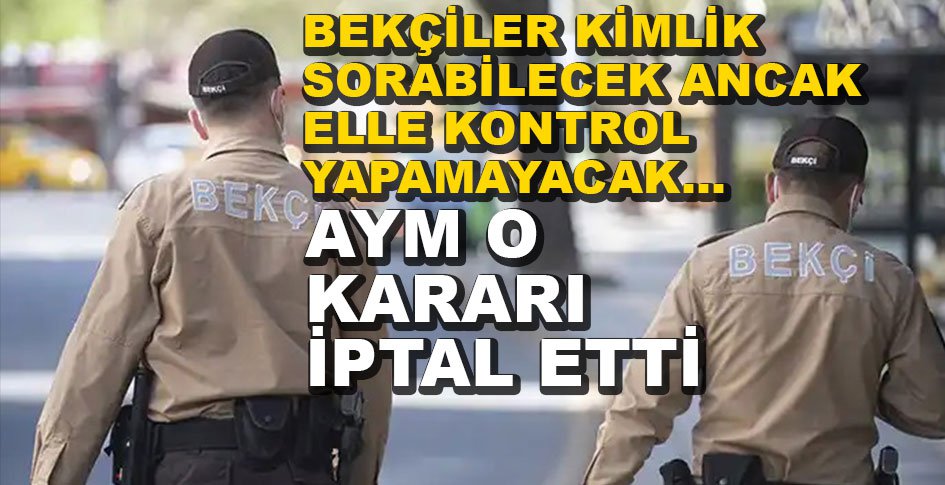 Anayasa Mahkemesi (AYM), bekçilere ''arama'' ve gösterilere karşı ''önleyici tedbir alma'' yetkisi veren yasa maddelerini iptal etti. Buna göre, bekçiler silah taşıyabilecek, kimlik sorabilecek ancak elle üst araması yapamayacak.