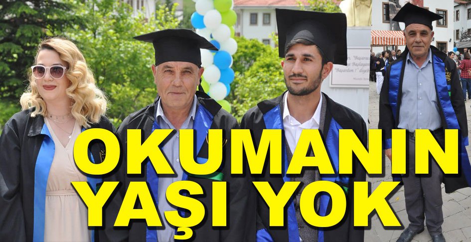 Bolu Abant İzzet Baysal Üniversitesi (BAİBÜ) Mudurnu Süreyya Astarcı Meslek Yüksekokulu’ndan mezun olan 51 yaşındaki Erol Kartal ve 2 çocuk annesi Melek Öztaş öğrencilerle birlikte mezuniyet heyecanını yaşadılar.