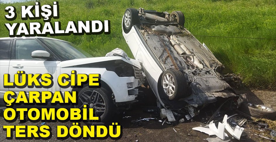 Bolu’da yoğun yağmur yağışı nedeniyle sürücüsünün direksiyon hakimiyetini kaybeden cipin bariyerlere çarparak ters istikamete dönmesi sonrasında aynı istikamete giden otomobilin cipe hızla çarpmasıyla meydana gelen trafik kazasında 3 kişi yaralandı. Otomobil çarpmanın etkisiyle ters döndü.