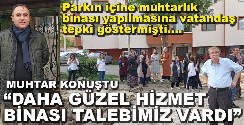Tepkilerin odağındaki isim Kültür Mahallesi Muhtarı Cengiz Bulut, “Kültür Mahallesi Cem Sultan Caddesi üzerindeki muhtarlık hizmet binamızın bildiğiniz üzere kaldırımın ortasında. Kültür Mahallesi nüfusu olarak da merkezde en kalabalık mahallelerden biri. Mahallemize daha güzel bir hizmet binası talebimiz vardı. Sağ olsun Belediye Başkanımız bizimde yer olarak öneride bulunduğumuz yere değil ama Çiğdem Parkı’nın diğer tarafına yapılmasına karar verdi” dedi.