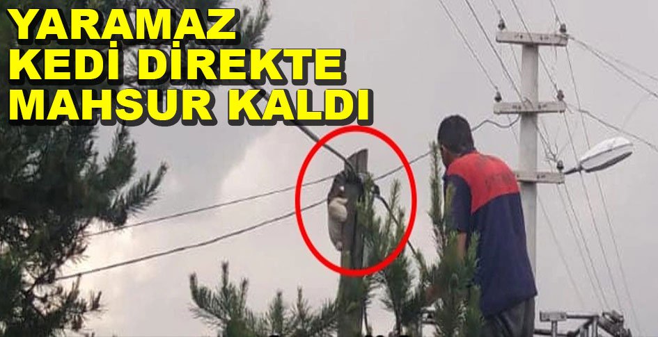 Olay yerine gelen itfaiye ekipleri merdivenli araçla kediyi mahsur kaldığı telefon direğinden kurtararak doğaya saldı.